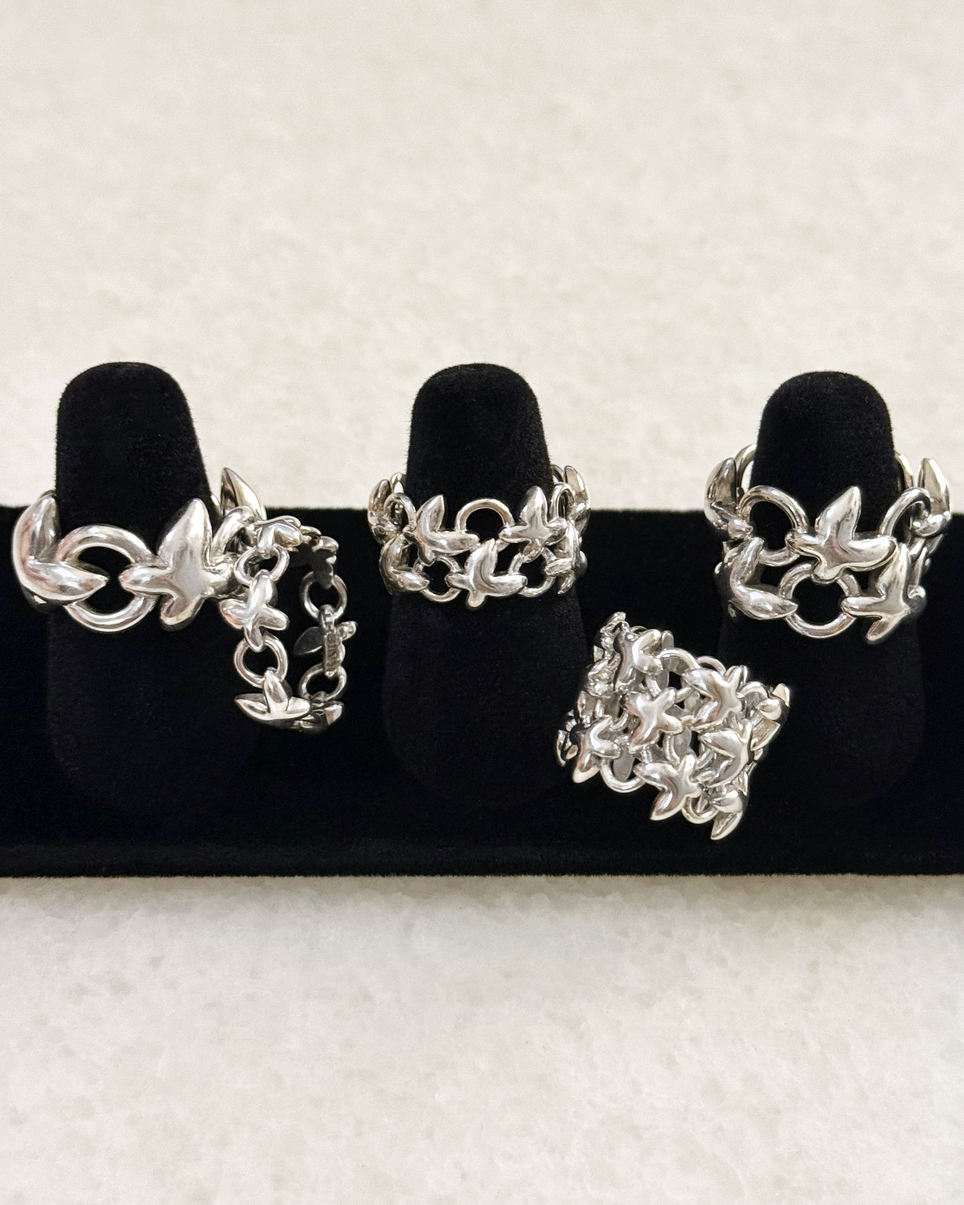 每一隻蝴蝶都與下一隻相扣、環環相連,如同我們的生活,每個人、每段經歷都彼此交織,構成緊密相連的關係網。特別喜愛這種設計方式,喚起人生的連結性——並非孤立存在,而是與世界、與彼此緊密相依。