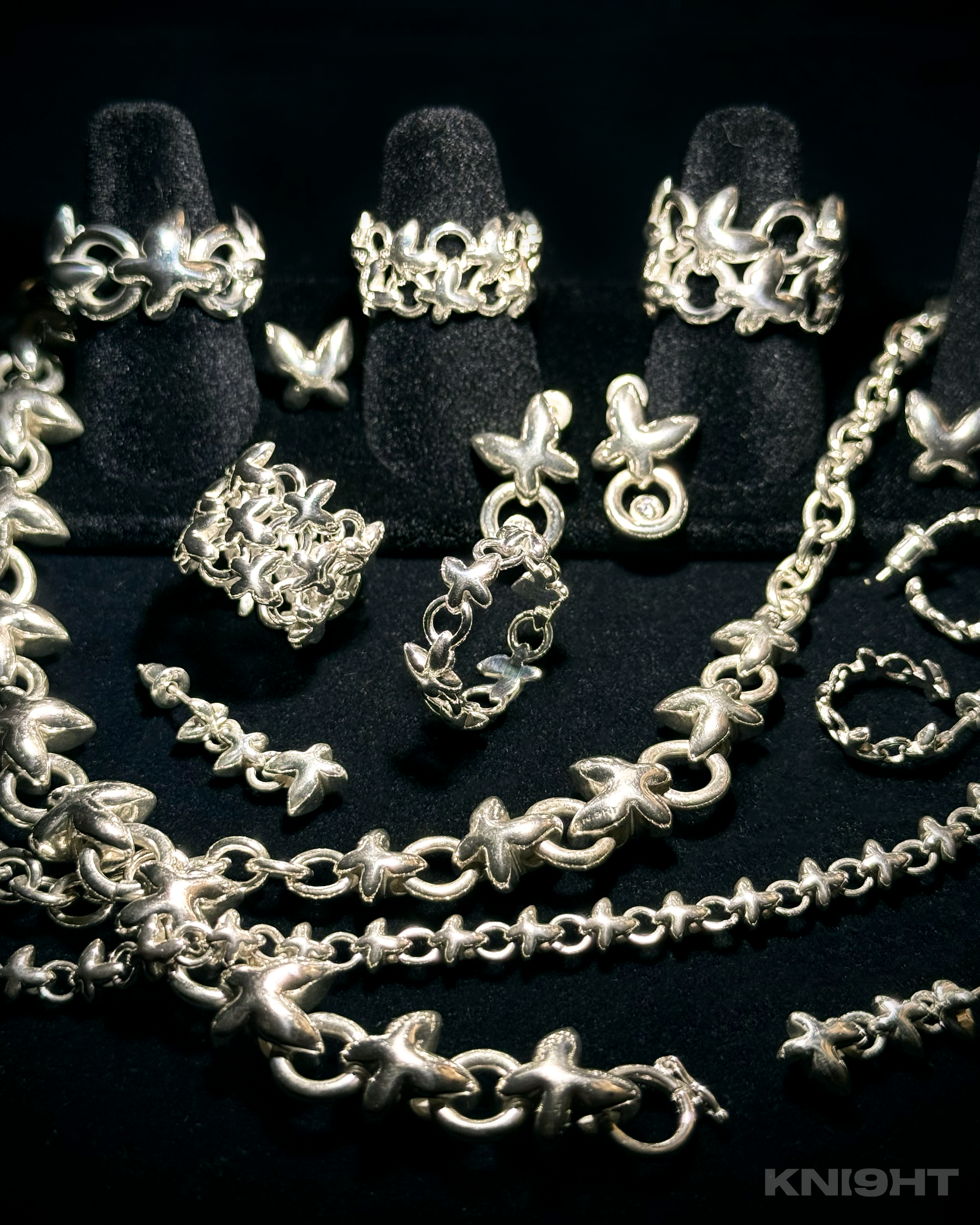 蝴蝶一直是品牌的象徵,而這個系列則是對它的全新演繹。這次的設計摒棄以往柔和的輪廓,轉而以更俐落、尖銳的線條呈現,展現一種剛毅且果敢的風格。希望透過這樣的變化,賦予蝴蝶嶄新的力量感,創造一款獨樹一幟的珠寶系列。